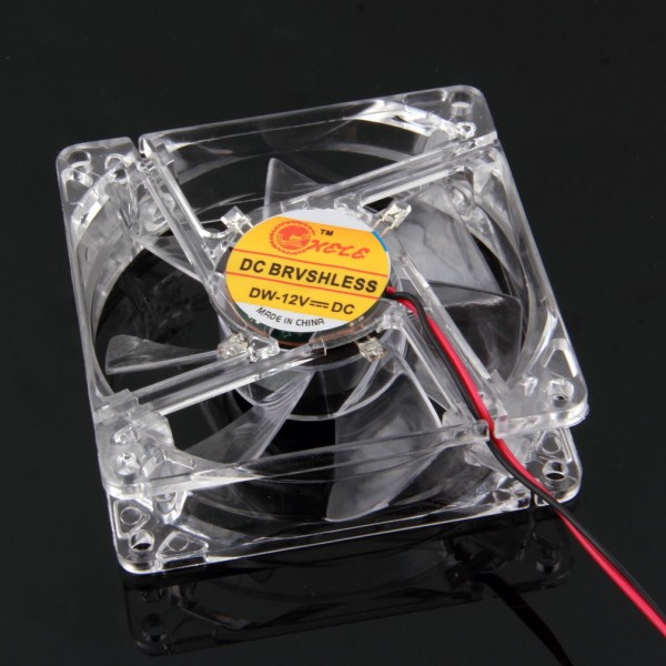 Ventoinha Brushless 12V 4 Pinos 80x80x25mm transparente c/ 4 LEDs Azuis