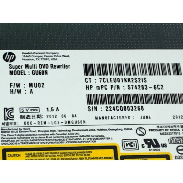 Peças HP EliteBook 2560P DVDRW + Bezel + Lock 574283-6C2 GU60N 651358-001