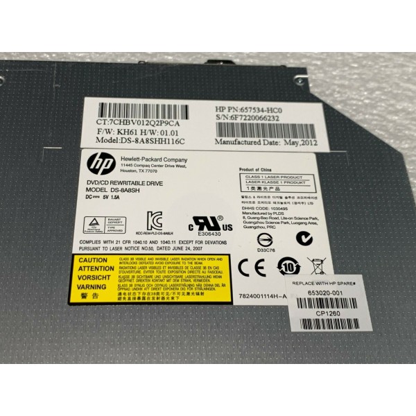 Peças HP EliteBook 8560W DVDRW 653020-001 657534-HC0 DS-8A8SHH116C