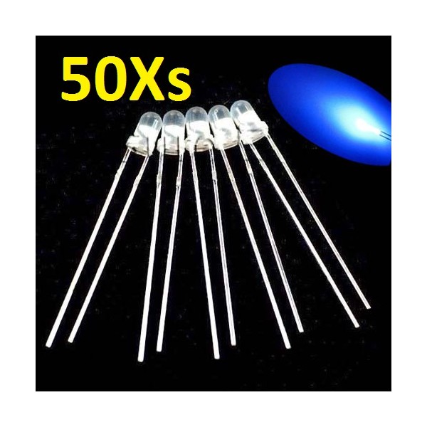 50X Led 3mm cristal azul alto brilho