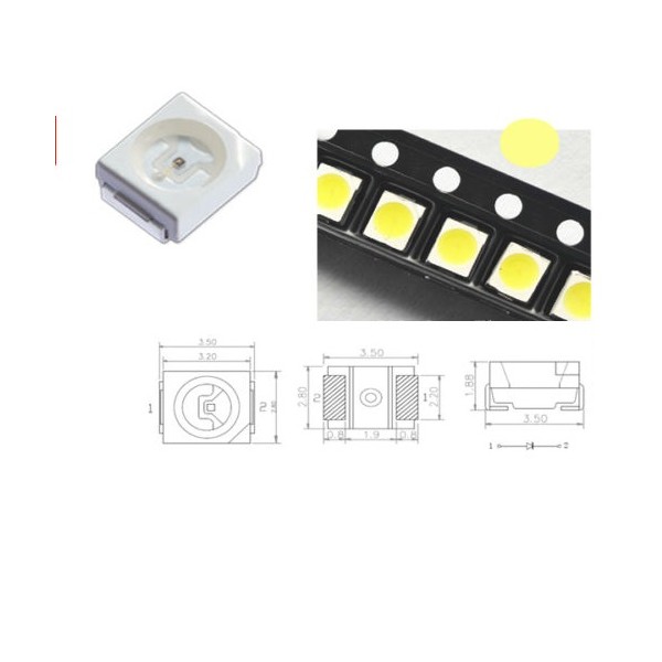 5X Led SMD 3528 Warm White - branco quente