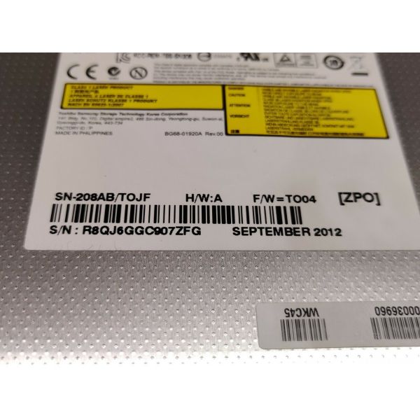 Peças Toshiba Satellite C855-1U7 DVD-RW SN-208 H000036960 WKC45 R8QJ6GGC907ZFQ